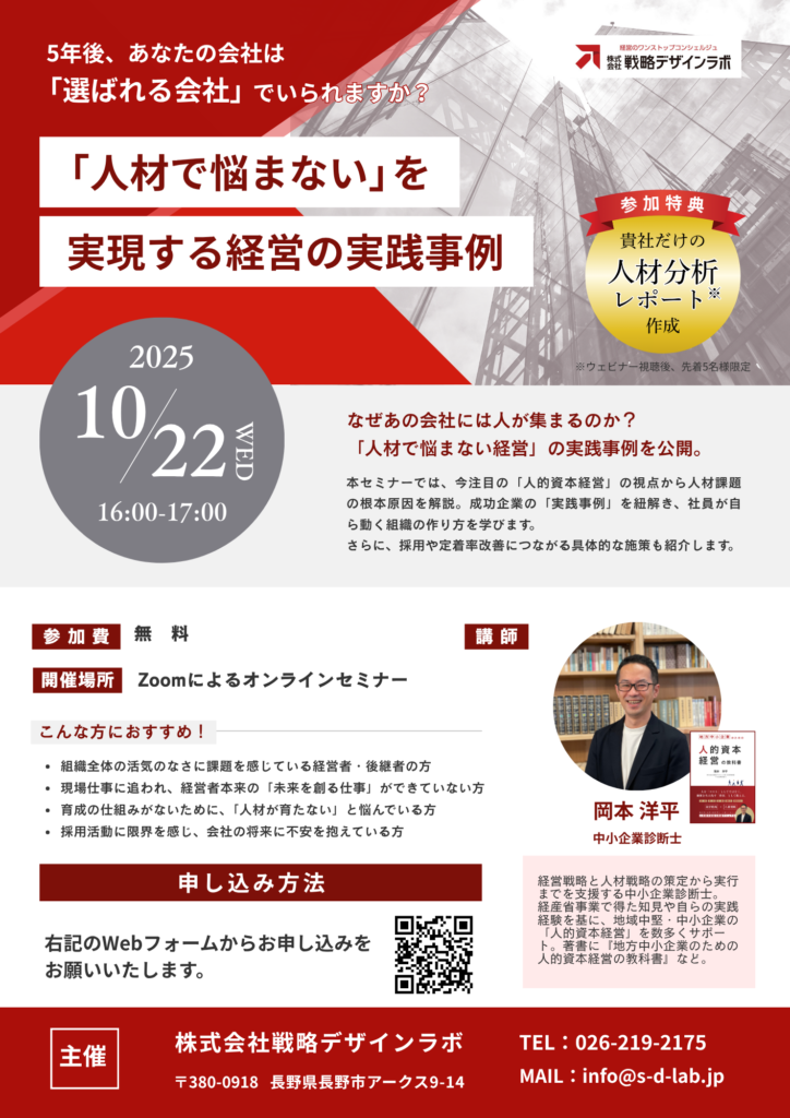 組織の活気を取り戻し、会社の未来を創るための第一歩を踏み出したい方は、ぜひご参加ください。