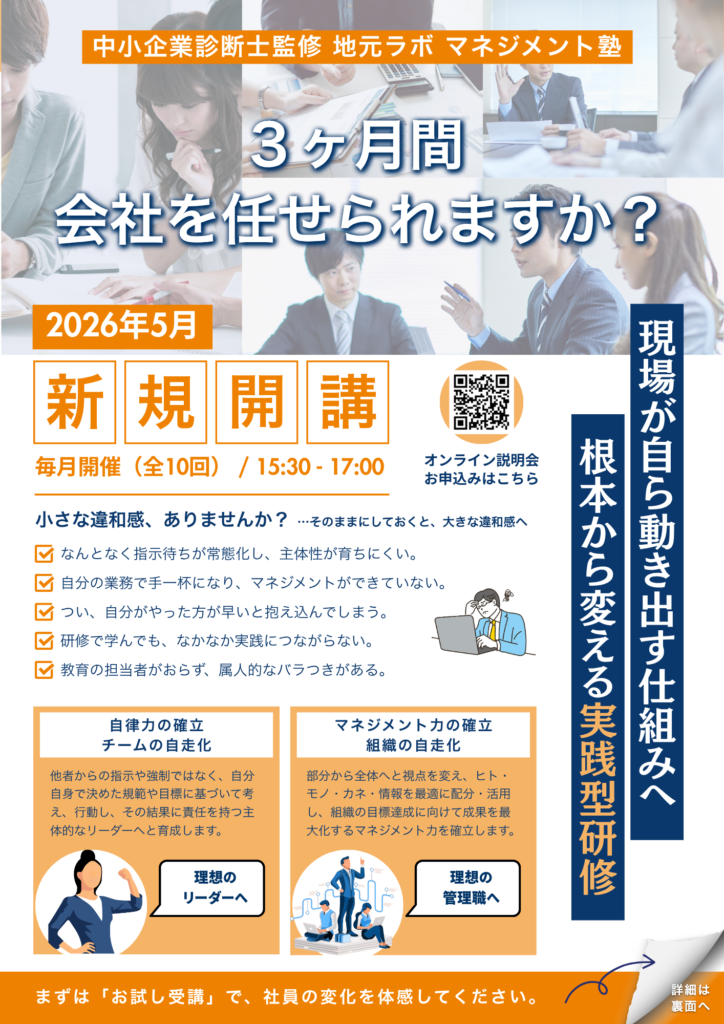 『地元ラボ マネジメント塾』を2026年5月より新規開講いたします。